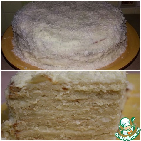 Нежный кокосовый торт с творожными коржами и миндальными нотками. Любителям конфет с одноименным названием! Отличный вариант к моему любимому наступающему праздинику - Дню Всех Влюблённых!