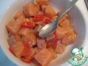Замариновать семгу в приготовленном маринаде.