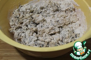 Выкладываем на стол, присыпанный мукой и месим до однородности, тесто липкое, но больше чем полстакана муки не добавлять!