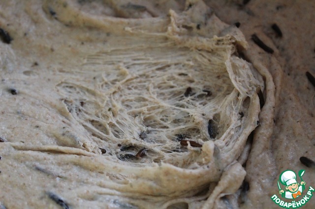 Оставляем тесто накрытым на пару часов, чтобы приобрело комнатную температуру, формуем хлеб, выкладываем на противень - я пекла на силиконовом коврике