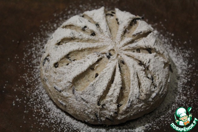 Я хотела сделать верх немного рваным, поэтому присыпала верх мукой и сделала надрезы, оставить на час для подхода теста