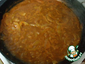 • Отдельно обжарить лук соломкой и перец соломкой, добавить томат-пасту, залить водой, посолить, поперчить, и тушить до выпаривания жидкости наполовину, затем выключить и залить маринадом рыбу, оставить на ночь, пропитанная рыба получается очень нежная.