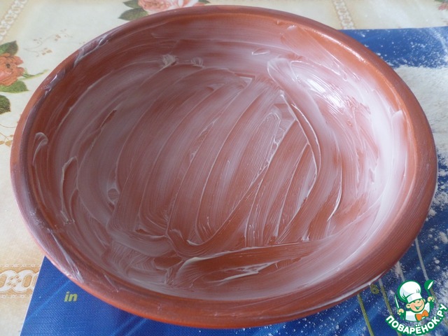 Тесто выкладываем на рабочую поверхность. Немного обминаем и придаем форму толстой лепешки. Кладем в форму для выпечки. ( У меня форма объемом 1 литр). Накрываем полотенцем и оставляем на 30-35 минут. Выпекаем в разогретой духовке 40-45 минут при 160-180 градусах.