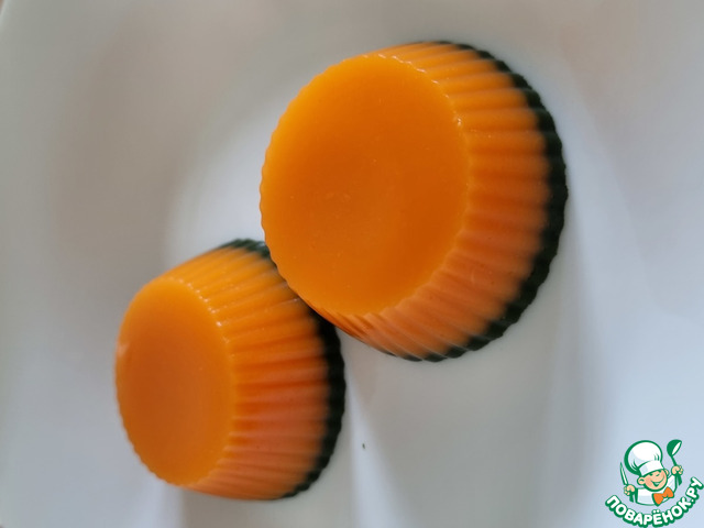 Заполнить формы пюре на 1/3. Я использовала формочки от конфет. Убрать в холодильник на 20 минут до застывания желе.