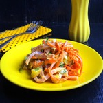 Салат можно кушать сразу, а можно дать постоять. Он и на следующий день вкусный.