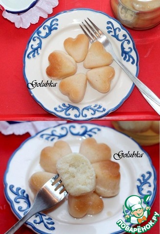 Тоже помучалась с формой, т.к. она у меня одна была на 10 ячеек-сердечек, а теста туда надо класть совсем чуточку. Срочно куплю вторую)))