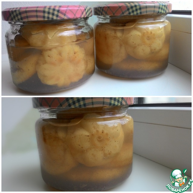 10. Даём банкам остыть. Кексы «напившись» сиропа, увеличатся в размере, заполнят всю банку. Хранить их нужно в прохладном тёмном месте, а лучше в холодильнике.