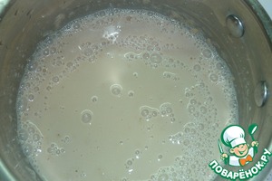 Подогреть молоко, растворив в нем сахар. Постепенно влить теплое молоко и добавить оливковое масло.
