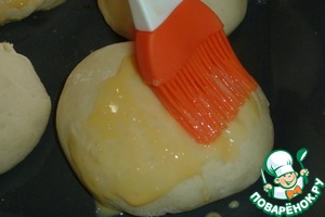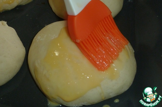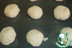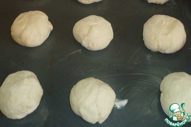 Сформировать круглые булочки, выложить их на противень, накрыть полотенцем, оставить на 30 минут.