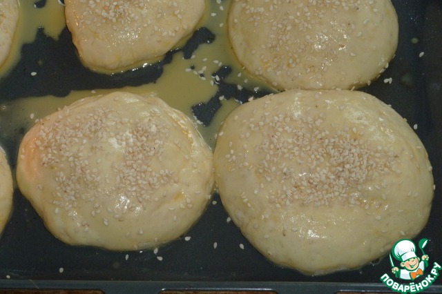 И посыпать кунжутным семенем. Выпекать булочки в разогретой до 180 градусов духовке 30 минут, ориентируясь на возможности своей духовой камеры.