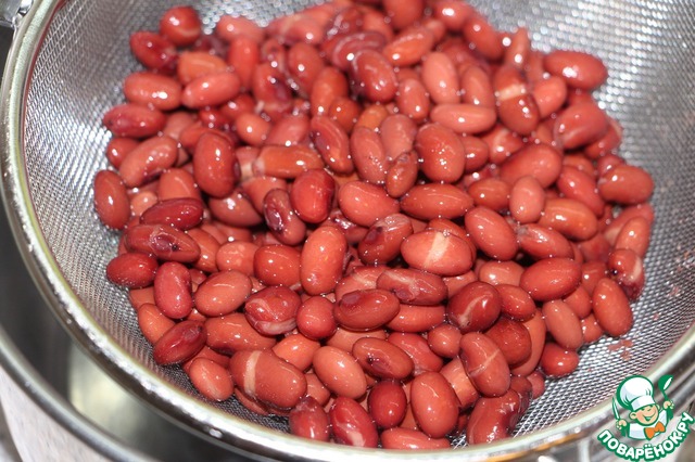 Красную фасоль Кидни от ТМ Мистраль замочить в воде не менее чем на 4 часа, я замачиваю на ночь и ставлю в холодильник, чтобы вода не закисла. Или воду нужно периодически менять.