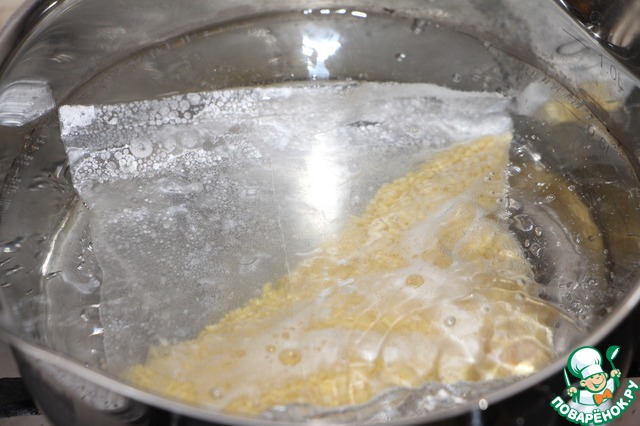 Пакетик опустить в посоленную кипящую воду и варить 30 минут. Остудить.