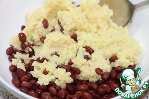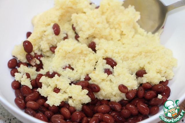 Смешать фасоль и пшенную крупу, пюрировать блендером или провернуть через мясорубку.