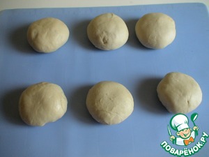 Разделить тесто на 6 частей, каждый кусочек сформировать в шар, подкатать.
