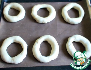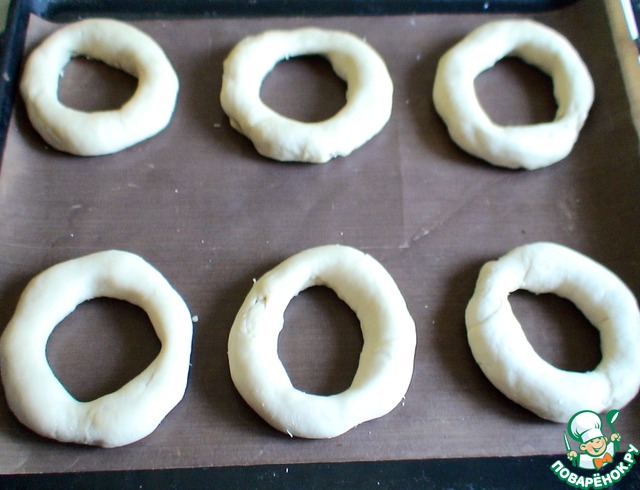 Можно ориентироваться на шумовку, только помните, что у Украинских бубликов большая дырка. Выложить на противень.