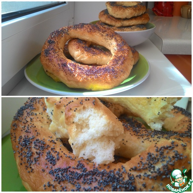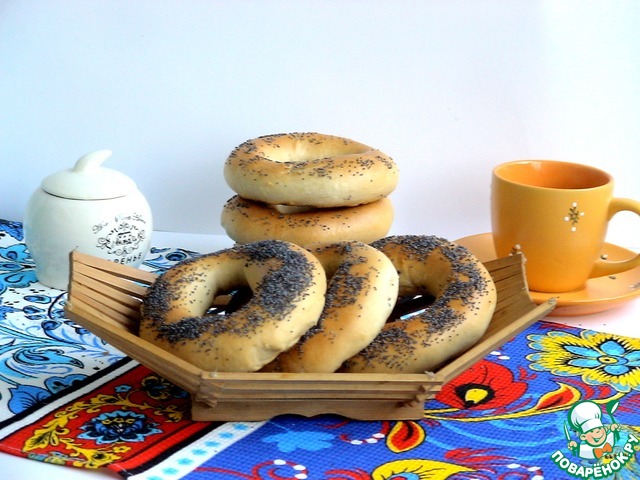 Моя соседка с Украины, очень часто со слезами на глазах вспоминала и корила себя, что не запомнила рецепт бубликов, которые пекла ее мама. Помнить, как сходились все сестры с продуктами, замешивалось тесто, затем обваривалось, выпекалось и связывались баранки на веревку, вязанок было много, хватало надолго. И вот так я впечатлилась ее рассказом, что пыталась пробовать разные рецепты, но соседка говорила. Что все это не то. В общем мой пыл начал гаснут, и в очередном разговоре, мы выяснили, что говорим об одном и том же бублике за 9 копеек. Я очень любила эти бублики, такой мягко –резиновый мякиш, обсыпанные маком. Оставалось все- таки найти это тесто, и я его нашла у Михаила crucide. Огромное спасибо, за совет как формировать бублики с помощью бутылки Ирине nira60 Бублики скажу я Вам просто сумасшедшие, очень вкусные, такой удивительный мякиш, вкус, а запах…. Его невозможно передать. Жалко только одно, что бубликов получается мало, надо делать двойную порцию. И еще настоящие Украинские бублики пекутся только из муки 1 сорта. Также пекли эти бублики в программе " Честный хлеб"