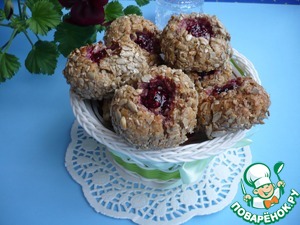 Рецепт «Печенье с овсяными хлопьями, семечками и джемом»:
