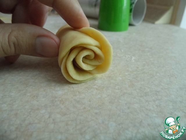 И скатываем кружочки как рулет, получается розочка с одной и с другой стороны.