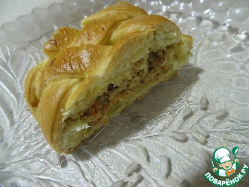 Дрожжевое тесто очень легкое в работе, начинка вкуснейшая, ее сочность пропитывает изнутри рулет, а сверху он покрывается хрустящей и одновременно мягкой корочкой. Сложно описать - нужно пробовать... Кто любит дрожжевую выпечку не прогадает, а любители мяса вообще приятно удивятся. Он получился вкуснее чем я предполагала)))