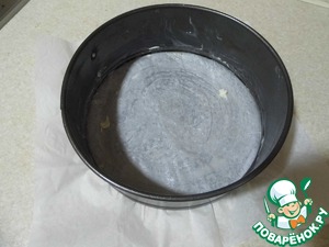 Форму застилаем пергаментной бумагой и смазываем дно и бока маслом или маргарином.