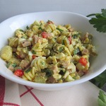 Предлагаю вам попробовать, своего рода, Швейцарский оливье... Хёрнли салат - как Оливье для нас. Простой. И в пир, и в мир. Сытный. Можно взять на работу или накормить любимого мужа. Хёрнли-это вид макарон. Можно сказать, рожки. В итоге, это салат с пастой Хёрнли. Классический Швейцарский салат. Приятного аппетита, любители салата с пастой.