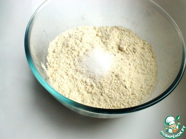 • Просеять муку, отложить 100 гр, оставшиеся 400 гр перетереть с мягким сливочным маслом