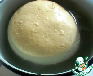• И теперь ждем, минут через 10 тесто начинает всплывать, может занять больше времени, наберитесь терпения. У меня тесто всплыло через 15 минут, я его еще в воде поддержала 10 минут. За это время пузырьки на тесте увеличились.