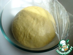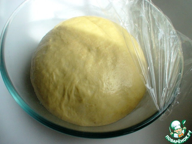 • Укладываем тесто в миску, накрываем пленкой и даем ему отдохнуть, собраться с мыслями, согреться 20 минут.