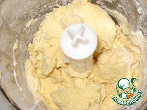 влить вино и замесить комковатое тесто, сильно и долго не вымешивать.