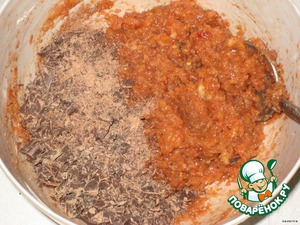 Добавить мелко порезанный шоколад и крахмал, все перемешать и убрать на 20-30 минут в холодильник.