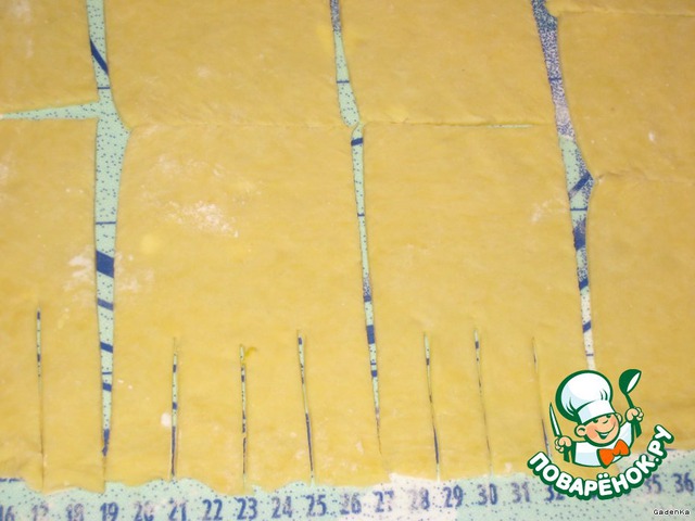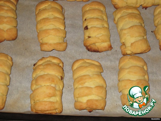 затем скатать печенье до конца и положить разрезанными полосками кверху на противень.