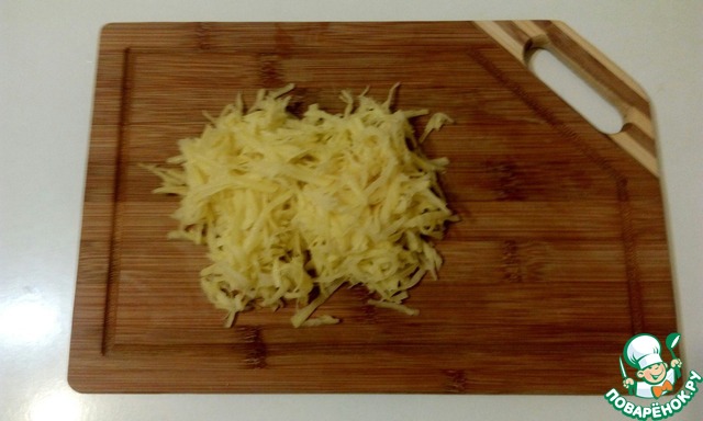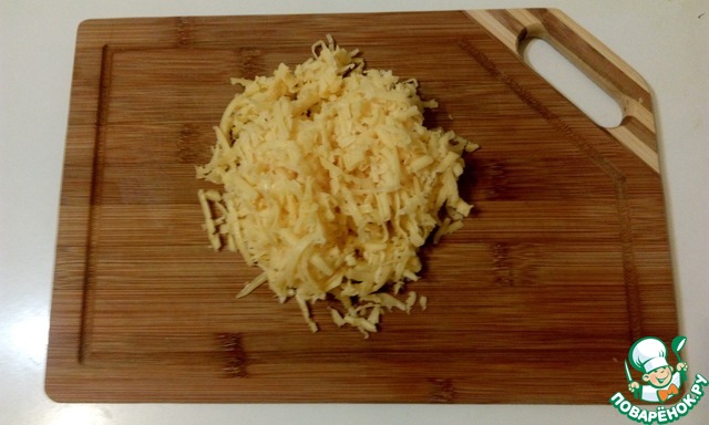 Трем сыр и в миску. Уменьшать количество сыра тоже не стоит - это тоже наш "клей".