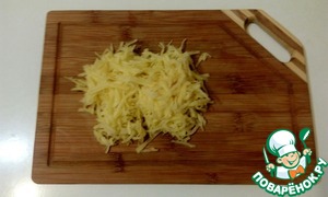 Картофель тоже трем и хорошо отжимаем сок, нам не нужна жидкость в начинке. У меня на фото уже отжатый картофель.
