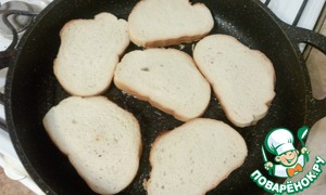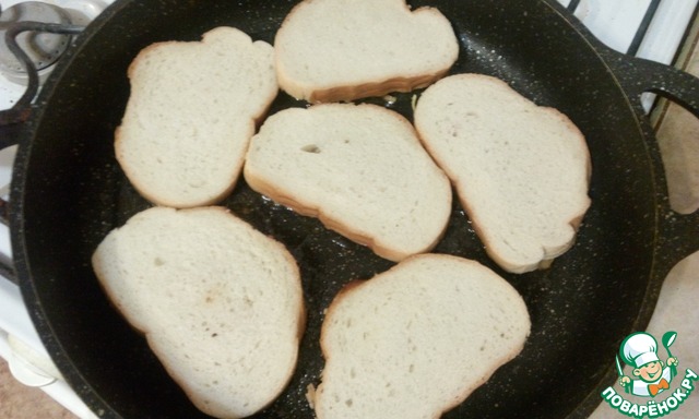 На хорошо разогретую сковороду с растительным маслом, кладем бутерброд начинкой на сковороду и не трогаем 5-7 минут. За это время начинка прожарится, прилипнет к батону и отлипнет от сковороды. Жарим на среднем огне.
