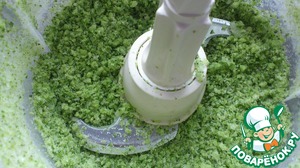 В комбайне или блендере с ножами измельчить брокколи. У меня свежезамороженная летом со своего огорода. Перед измельчением я ее не размораживаю.