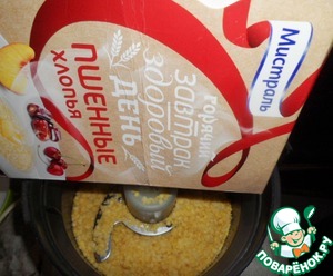 Пшенные хлопья ТМ «Мистраль» измельчить в комбайне как можно мельче, до состояния муки.