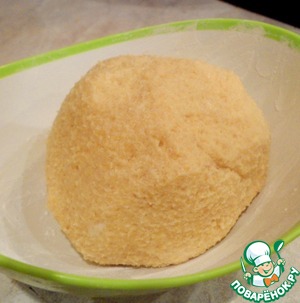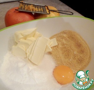 Смешать измельченные пшенные хлопья, крахмал, сахар, желток, разрыхлитель, сливочное масло и цедру апельсина (можно заменить цедрой лимона, но мне нравится небольшая горчинка от апельсиновой цедры).