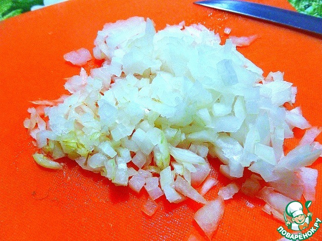Луковицу очистить и нарезать кубиками, как можно мельче.