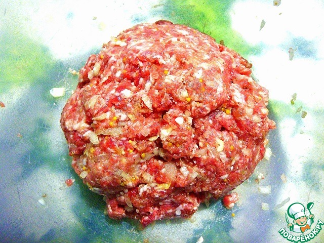 Добавить сыр, натертый на крупной терке. Тщательно вмешать сыр в фарш.