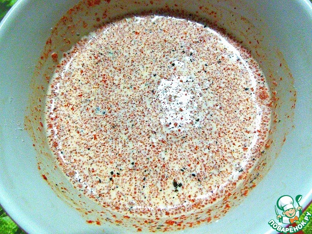 Все вышеперечисленное смешать, по желанию поперчить, если любите, можно добавить 1 ч. л. сушеного чеснока.