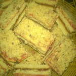 Далее я делала так: взяла противень, на него положила антипригарный коврик, и на нем руками один шарик теста расплющила и сделала прямоугольник. Лучше делать толщиной 8 мм примерно, меньше как-то тонковато, а толще толстовато, т. к. лично у меня оно слегка еще поднялось при выпечке. Выпекать при температуре 230-240 град., я пекла минут 12. Он должен подрумяниться сверху и не пригореть снизу.