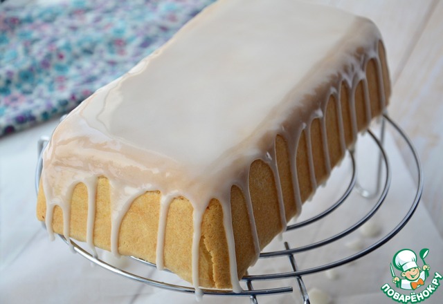 Поставить остывший пирог на решетку. Смешать сок лимона и сахарную пудру до однородной консистенции и нанести на пирог, дать подсохнуть глазури, можно просто посыпать сахарной пудрой. можно какао-порошком...