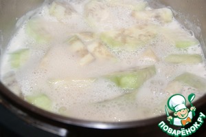 В горячем молоке растворить сахар и ваниль (если используете стручок, то приготовьте согласно инструкции) поместить в него баклажаны и варить 7-8 минут, остудить.