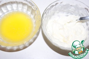Масло растопить и остудить. Сливочный сыр растереть со сливками.