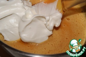 Белки взбить с сахаром (65 г) до устойчивых пиков...