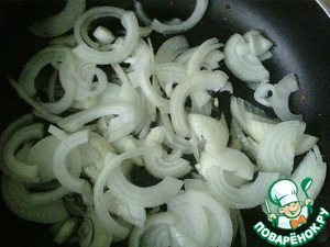 Лук порезать полукольцами и обжарить на масле до готовности.