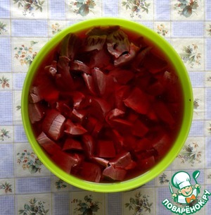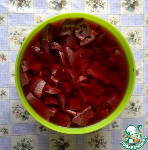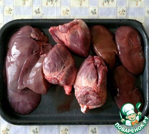 Делаю уксусный раствор из расчёта на 100 мл уксуса 1 л воды. Заливаю все три чашки с потрохами этим раствором на 30 мин примерно. Делается это для того, чтобы убрать излишний запах, присущий всем без исключения потрохам.
