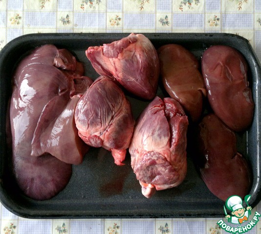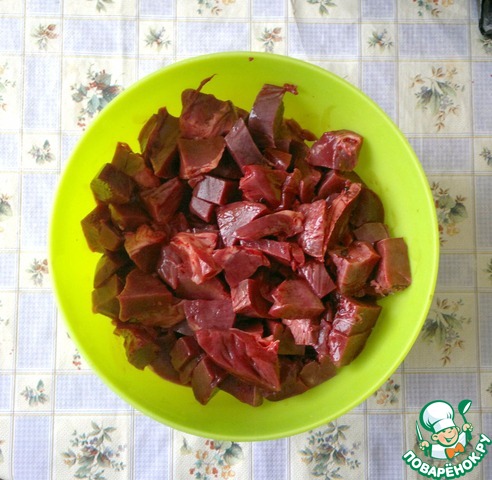Сердце чуть мельче. Оно самое жёсткое из этих потрохов.