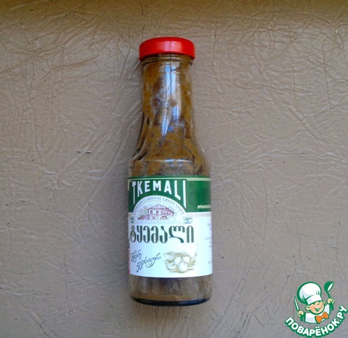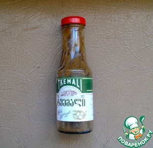 Итак, подходит время закладки всех остальных продуктов. Сначала кладу в казан соус "Ткемали".