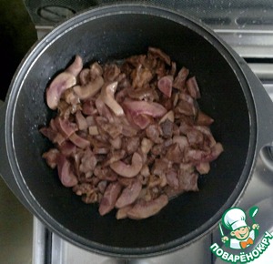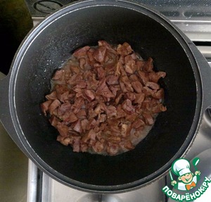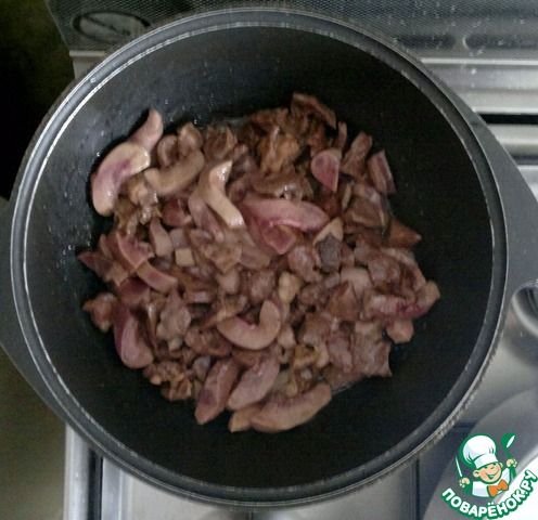 Когда сок испарится, обжариваю сердце до румяного цвета на небольшом огне.
